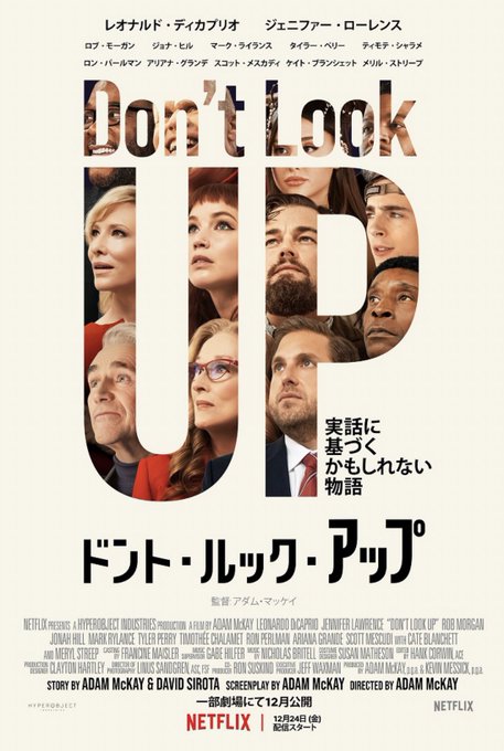 『ドント・ルック・アップ』鑑賞。アダム・マッケイのブレなさには感動する…。よくある地球滅亡の話。豪華なキャストを自由に泳がせて、滅亡よりもゾッとする隠れる恐怖を突きつけてくる皮肉。というか、地球滅亡の危機にどうやったらティモシー・シャラメと出会えますかね?(真顔) pic.twitter.com/9Xz71VeCkr