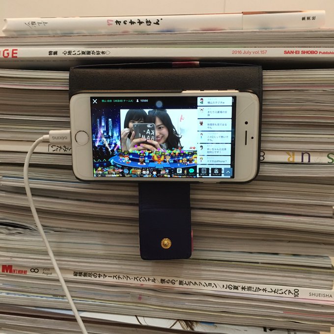 北原里英@Rie_Kitahara3 -- 横山のSHOWROOMに出演中や📺✨横山のスマホスタンド画期的や、、、最新すぎる😂😂😂雑誌の山にはさまってる😂😂😂 #showroom pic.twitter.com/gMchV2onZP