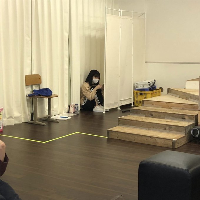 北澤早紀(AKB48)@Sakii_Kitazawa -- #山田家は引っ越さない昨日の稽古場での私です。ただの陰キャ。今日も稽古行ってきます!!💨#イジメられてません#隙間が落ち着くのよ#冷房の風も避けられるのよ pic.twitter.com/jVwvuyFGYR
