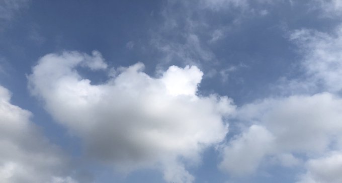おはぴろー🌞もくもく雲☁️が集まってきた #イマソラ もう蒸し暑い >_<🍧