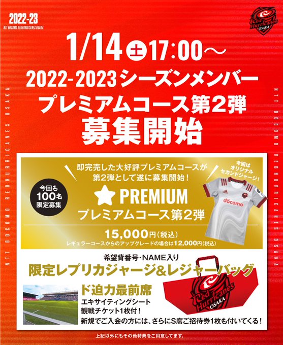 10月に即日完売となった有料ファンクラブ『プレミアムコース』の第2弾販売決定!なんと!限定カラーセカンドジャージ🙉🏉✨ twitter.com/redhurricanes/…