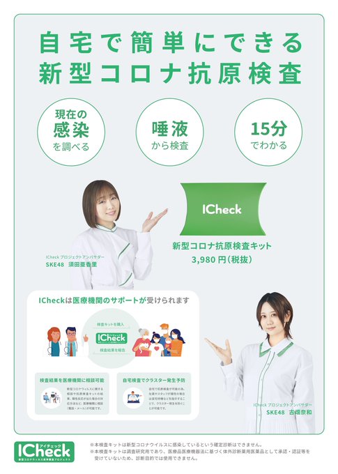 古畑奈和@alto_nao -- ドラッグストア「ココカラファイン」にてI check(抗体検査キット)が販売開始されています✅店内にポスターを掲出してくださっているみたいです!(掲出の有無は店舗判断です) pic.twitter.com/IubxJkuIS1 古畑奈和@alto_nao -- ドラッグストアの「なの花薬局」がICheck(抗原検査キット)の販売を2021年1月から開始します!🔸対象店舗60店舗(北海道/静岡県/愛知県/岐阜県/三重県/福井県/石川県)🔸ポスター掲出期間2021年1月5日〜順次店舗掲出(掲出の有無は店舗判断です。)