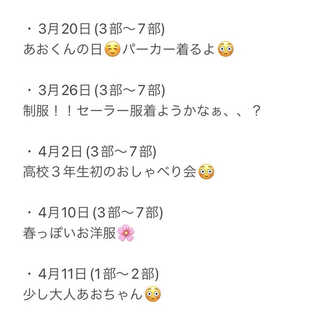 古舘葵@Aoi_Furutate -- 3月15日アイドルエッセンス公演😳♡楽しみだぁぁあ🥰🥰 twitter.com/official_ngt48… official_NGT48 【NGT48劇場情報🎤】2022年3月12日(土)~3月18日(金) NGT48劇場 公演スケジュールのご案内ngt48.com/news/detail/10…👘3月12日(土)『ただいま!十人十色公演 〜6人での思い出〜』#NGT48