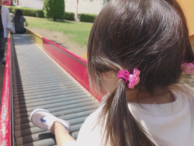 妹(2歳)と一緒にすべったすべり台、この年になるとすこしこわくなる