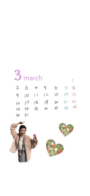 吉田華恋@karendar_827 -- 3月のカレンダーだよ〜🤗🤍作ってたの消しちゃって今超急いでで作りました😇🍓イチゴ狩りの時の写真ベースで作った☺︎ぜひつかってね〜❤︎ pic.twitter.com/NwXhyWqPHZ