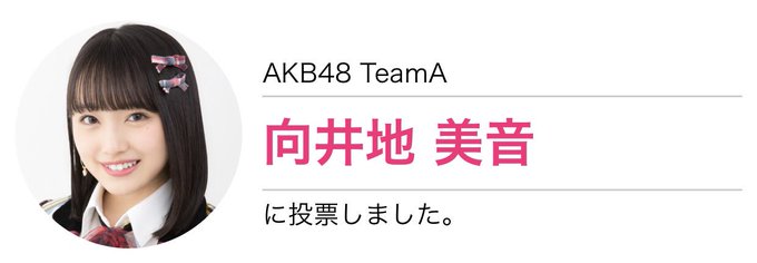 向井地 美音@mionnn_48 -- #世界選抜総選挙運命が決まるまで残り3時間。最後の最後まで応援よろしくお願いします。😢まだ残ってる人は絶対誰かに入れなきゃもったいない!よ!!! 向井地 美音@mionnn_48 -- あと5分!!!!!ワーオ