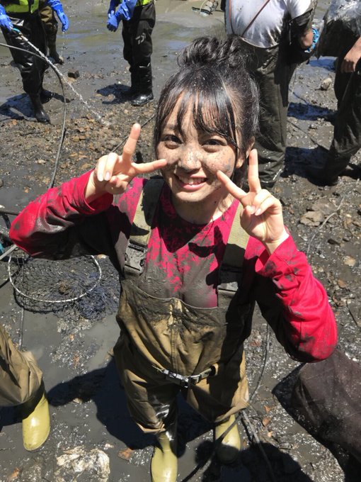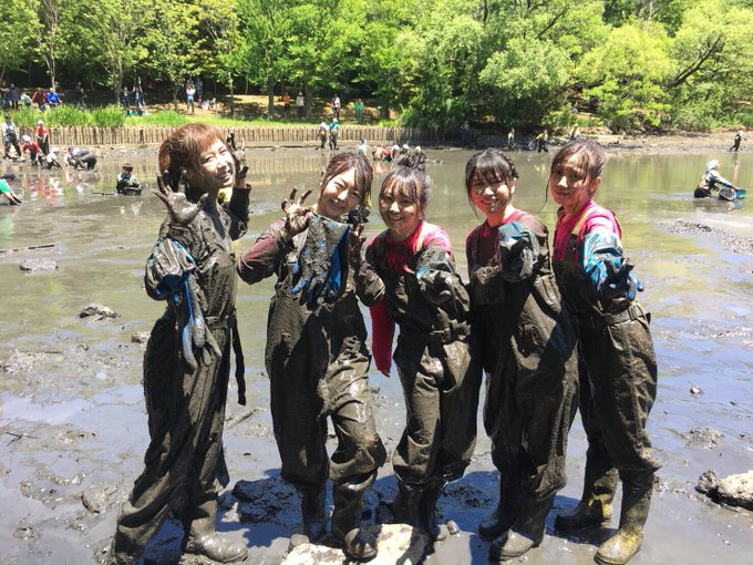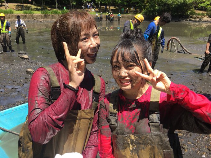 向井地 美音@mionnn_48 -- #池の水ぜんぶ抜く大作戦皆さん見てくれましたか?👀想像以上のどろんこになりながらも笑、とても貴重な経験をさせて頂けて達成感でいっぱいでした!楽しかった!ありがとうございました😳✨ pic.twitter.com/o4r58A765t