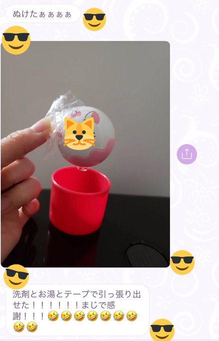 坂口理子@ricopi_726 -- 姉からLINEが来てこれの取り方をTwitterで募集してくれと!笑ハマってしまったみたいです😭😂 pic.twitter.com/WthwkOzrc9 坂口理子@ricopi_726 -- 素材は両方プラスチックだそうです!!!しかも小さめ!!!小さいおもちゃ!!! 坂口理子@ricopi_726 -- 姉から取れたと報告がきました😍!!みんなのおかげで早かった!!!笑みなさまありがとうございます😭🙇♂️ pic.twitter.com/ZJRU2xgezg