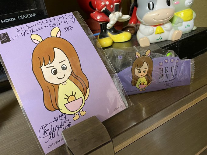 通りもんのポストカードと食べ終わった後の袋も大事に飾ってありました😂😂👏