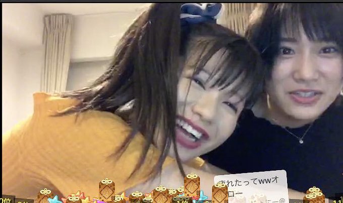 城 恵理子@erikonnitiwa11 -- あいりんごあめぺろりんちょサンキュー😂😂 twitter.com/_airi_tanigawa… 谷川愛梨 showroom配信ありがとうございました👭💓笑い疲れたーーー😂😂2枚目は自分顎乗せ(゚ω゚)笑3枚目はメンバー物真似中の2人😜#あいジョー pic.twitter.com/WiGHdHAUT9