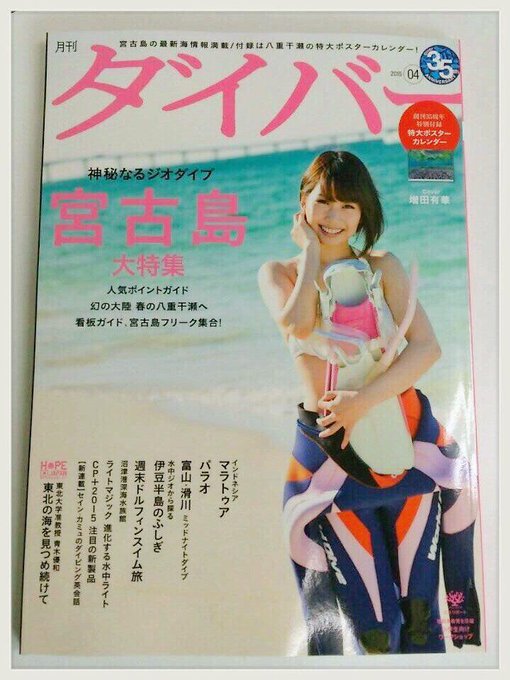 今日発売のダイビング専門雑誌『月刊ダイバー』の表紙と宮古島特集に載っています!この日が待ち遠しかったー(*^_^*)!もうGETされた方いらっしゃいますか?久々に水着きたよ笑。感想聞かせてね! pic.twitter.com/vWe1DO65Vb