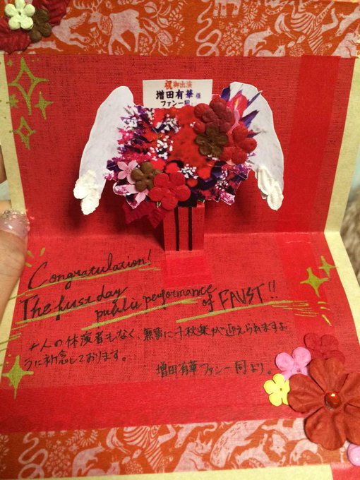 今回劇場のルールで、ファンの皆様からのスタンド花が見られなかったんですが、写真付きのお手紙をいただき、見ることができました😍いつもありがとうございます😊