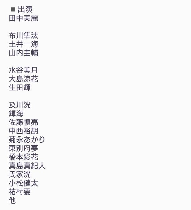 大島涼花@oshimaryoka_48 -- 出演します🤩久しぶりにみんなの前に立つな〜よろしくおねがいします! twitter.com/tuff_stuff_/st… TUFF STUFF 舞台『BASARA外伝~KATANA 虹の話ー銀杏ー』上演決定!詳細は画像にて🤗◾チケット先行発売 11月29日(木)19:00~TUFF STUFFオンラインチケット e-get.jp/tuffstuff/pt/12月8日(土)10:00より各種プレイガイドにて#田村由美 先生#BASARA#BASARA外伝 pic.twitter.com/eBbWNkGIud