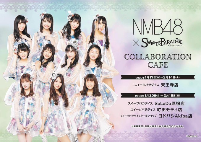 大田莉央奈@_otariona_0312 -- どんなメニューができるか楽しみですね〜🍰🍬🍭🍮🍩 twitter.com/nmb48_official… NMB48 Official 🍰┈┈┈┈┈┈┈┈┈┈┈┈┈┈🍰#NMB48 × #スイーツパラダイスコラボレーションカフェ開催決定💕🍰┈┈┈┈┈┈┈┈┈┈┈┈┈┈🍰2020年1月17日大阪・天王寺店をはじめ計4店舗で期間限定開催します🎉メンバー考案のオリジナルメニューを是非食べに来てください🥰✨sweets-paradise.jp/collaboration/… pic.twitter.com/ubONK6h5Zg