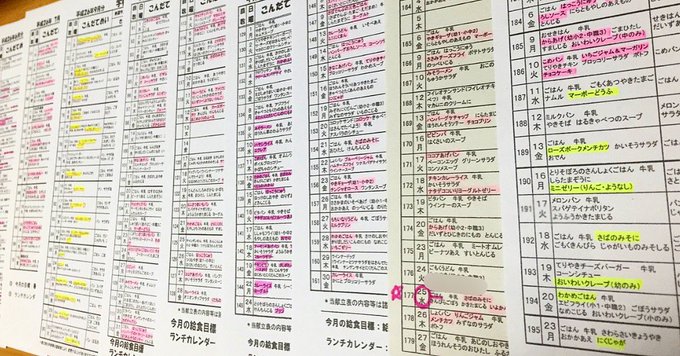 この前SHOWROOMで話した給食のお話☺︎ 学生時代給食に全てをかけていました👩🏻🍳月のはじめに献立表が配られたらすぐに全部チェックして好きな食べ物にマーカー線引いてた