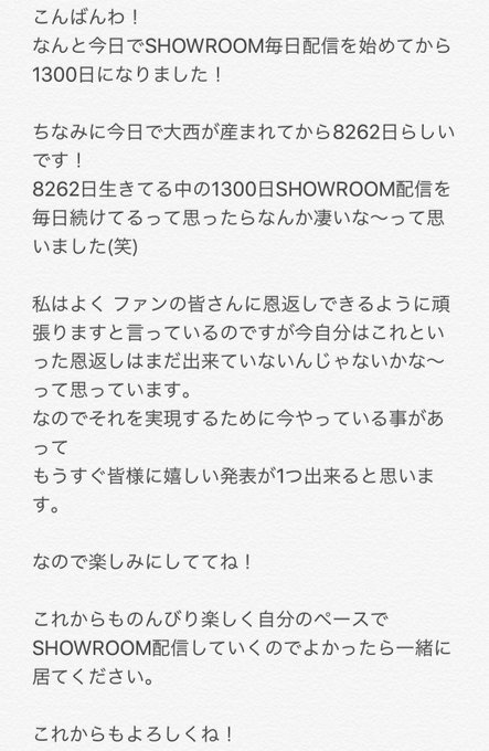 #SHOWROOM 配信 1300日記念日