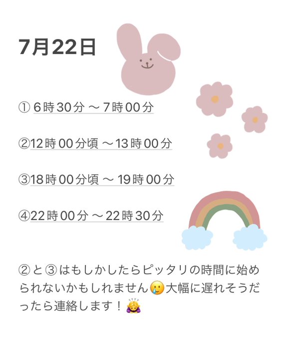 大西 桃香@momo_0x0_920 -- #SHOWROOM選抜 #狩西本日もありがとうございました!☺️🤍明日はこんな感じのスケジュール🌷今日も楽しかった明日も楽しもう👊🏻 #拡散希望 pic.twitter.com/40Xp6AOHN2 大西 桃香@momo_0x0_920 -- ② 12時からの配信、10分〜15分ほど遅れます、、!🙇♀️ #SHOWROOM選抜 #狩西