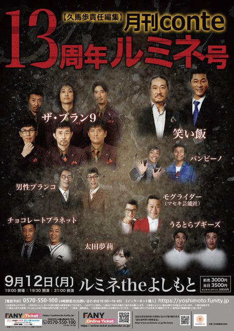 太田夢莉@yuuriso_1201 -- 明日19:30〜 です!間違いなく面白いです🤢 twitter.com/conte_tokyo/st… 久馬(ザ・プラン9。月刊コント) 明日のお稽古でした。まだお席あるよー『月刊コント13周年ルミネ号』9/12 ルミネザ・プラン9 笑い飯うるとらブギーズチョコレートプラネットバンビーノ男性ブランコモグライダー太田夢莉yoshimoto.funity.jp/kglist/配信はこちら。online-ticket.yoshimoto.co.jp/products/lumin… pic.twitter.com/mNUfzCrwgB
