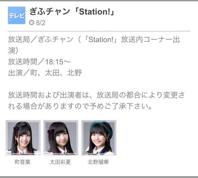 太田彩夏@Ayamelody0817 -- 先日、収録に行った「SKE48の岐阜県だって地元ですっ!」明日放送日です\(^^)/時間は、18:15〜です!是非、放送地域の方は見てくださいね😊✨ pic.twitter.com/B7Bs6f9J76