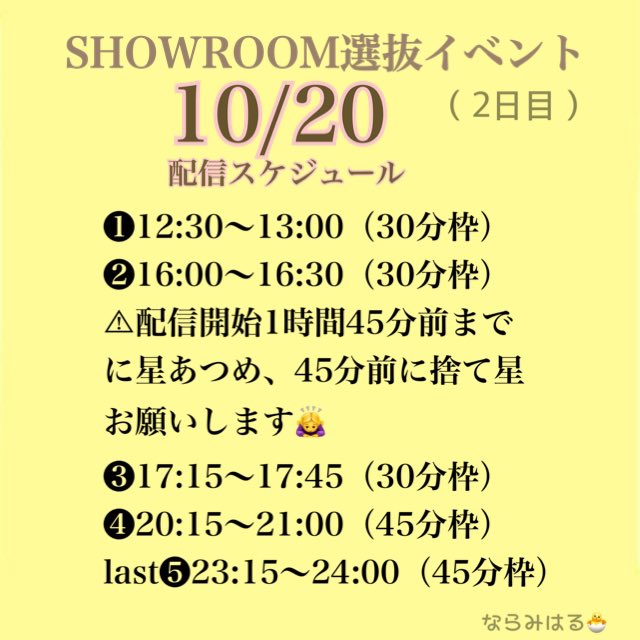 日付変わって今日(10/20)の配信スケジュールです