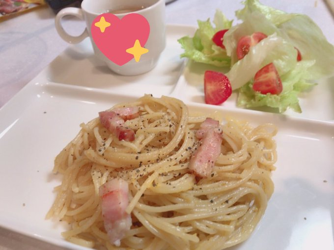 「オムライスを作った時に生クリームが残ったので今日はカルボナーラ」を作りました💗