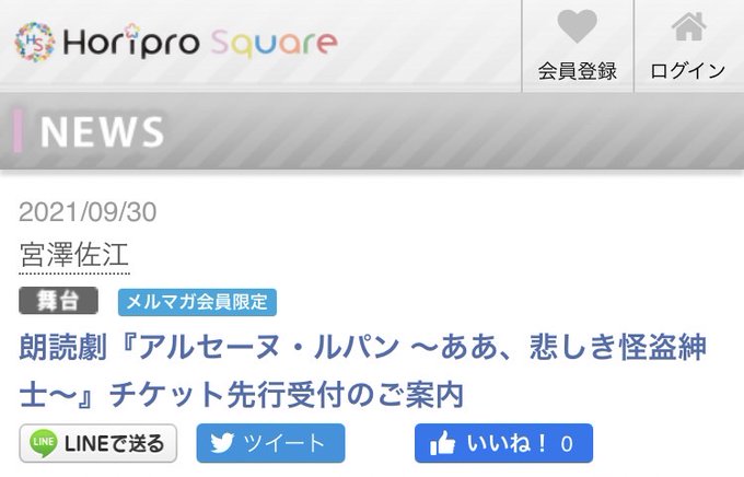 宮澤佐江@oyasuminaSAE_m -- 👀✨ twitter.com/horiprosquare/… ホリプロ・スクエア Horipro Square #宮澤佐江 出演朗読劇『#アルセーヌ・ルパン ~ああ、悲しき怪盗紳士~』チケット先行受付決定!🎫受付開始📅2021年10月1日(金)18:00~受付開始まで今しばらくお待ちください。▼詳細はこちらhoripro.jp/r/news/detail/…@oyasuminaSAE_m @koten_reading #ホリプロ・スクエア pic.twitter.com/khqVCPmbtl