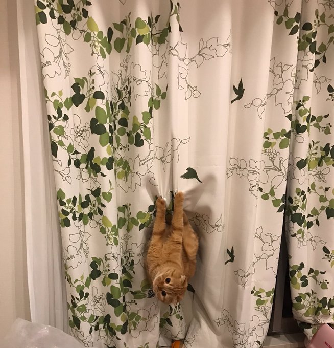 おかげでカーテンボロボロ😉💛 pic.twitter.com/zRUrcE4073