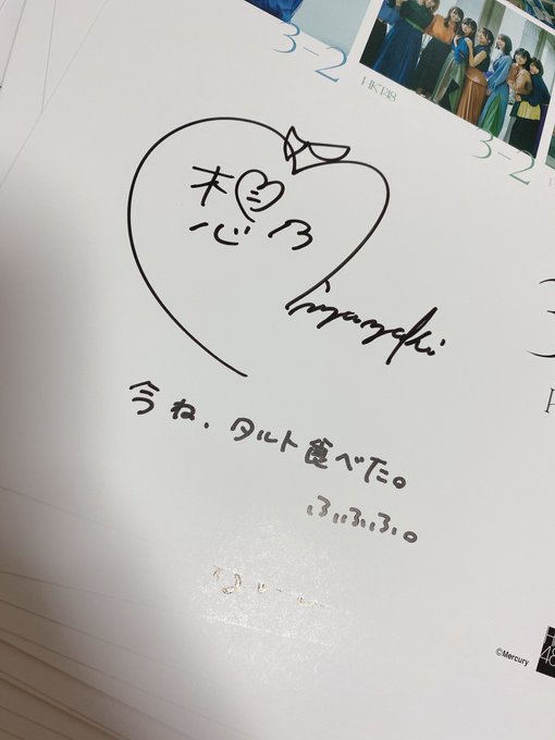 宮﨑 想乃 ( HKT48 )@sono_m_1030 -- みなさんこの写真覚えてますか?1枚超意味のわからないサインがありますと言ってたと思うんですけどすごく言いにくいんだけどお母さんが1枚CD頼んでたらこれ家に帰ってきました。 pic.twitter.com/9SM0wCOdrE