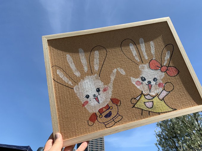 早速!おき太くんめざめちゃんの手形アートをスタジオに飾ってくださりました!皆さん優しい🥺💗 pic.twitter.com/Hbh2t0Zke3
