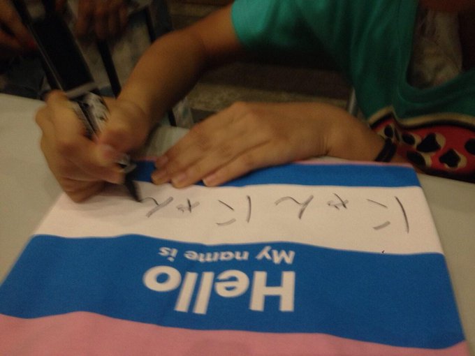 HKTなこちゃんに名前書いてもらいました😂💛💛#akb夏祭り pic.twitter.com/XAvszIPu7H