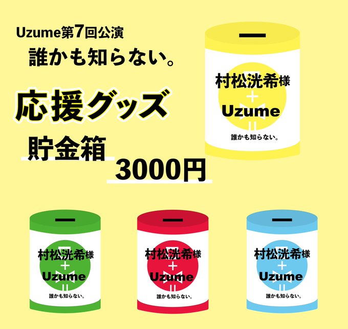 小林 亜実@kobayashiami112 -- こんなものがあるよ〜!もしよければ参加してみて下さい☺️劇場に貯金箱が並ぶの楽しみだなっ! twitter.com/__uzume__/stat… Uzume 🟡Uzume第7回公演🟡 『誰かも知らない。』【応援グッズ】🗳名入れ貯金箱🗳たくさんのご注文頂き、誠にありがとうございます🙇🏻♂️!uzume.official.ec応援グッズは、売り切れ次第終了❗️また、受付は⏳3月28日(月)23:59迄⌛️ですので、申し込み忘れのなきようお願いたします👀✨ pic.twitter.com/s6vaNrBai8