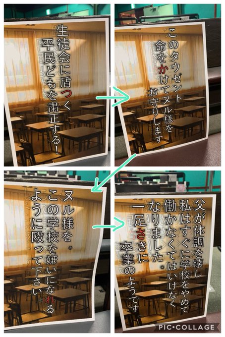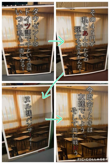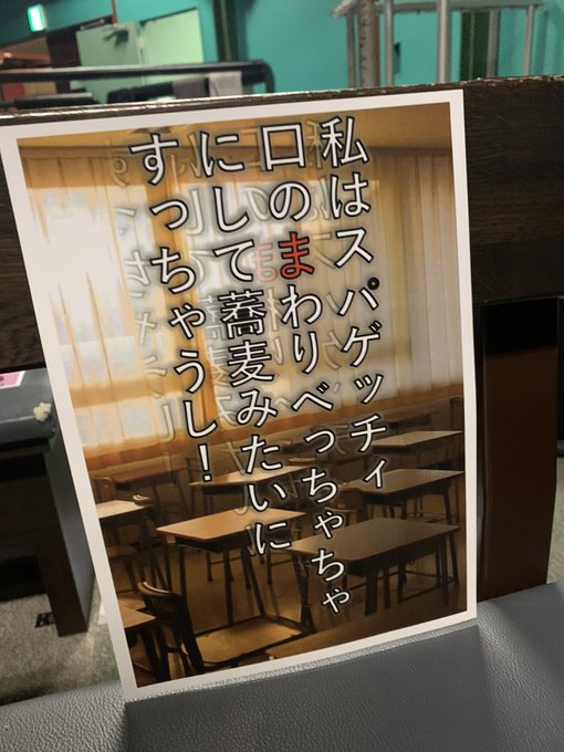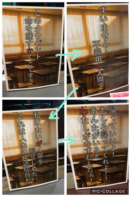 「マジムリ学園-外伝-タウゼント」のセリフの紙が貼ってあってなんじゃこりゃ?ってずっと思ってたら赤文字を順に読むと…