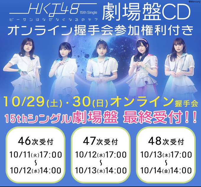山下エミリー@emiri_hkt48_T2 -- オンラインお話し会最終受付中です!この機会にまだ取ってなかったり話したことない方も是非待ってます🌰 twitter.com/hkt48_official… pic.twitter.com/Cff5fPrwYZ HKT48 HKT48 15thシングル「ビーサンはなぜなくなるのか?」 劇場盤発売記念「オンライン握手会」<第46~48次受付>のご案内hkt48.jp/news/2022/09/8…今回で15th劇場盤の最終受付となります!みなさまからのお申し込みお待ちしております!!#HKT48#HKTビーサン pic.twitter.com/XIJnEtd4r3