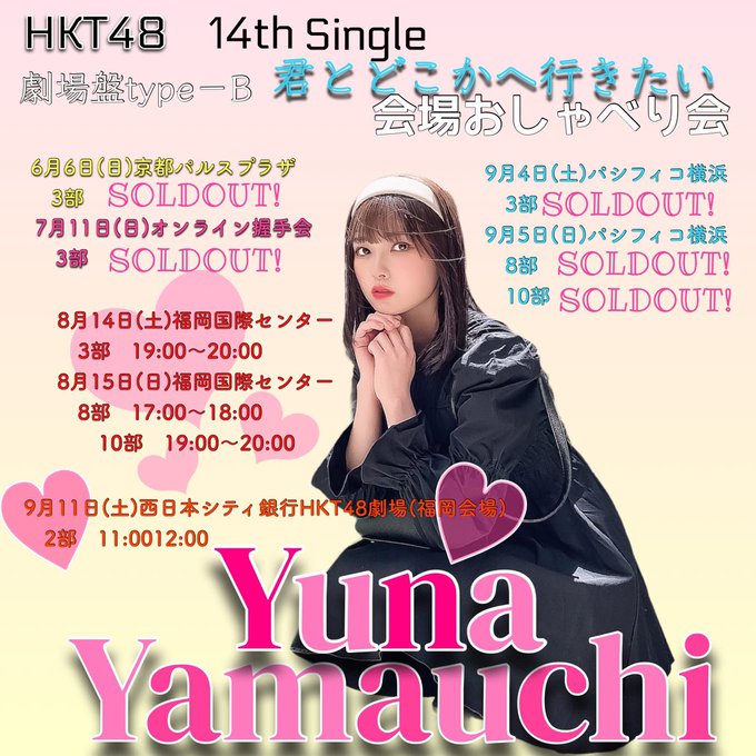 山内祐奈@yuna_0706hkt -- 14時までです🥺他のところはありがたいことに完売して残るは福岡だけなんですけど会えるかなぁ。🥺entry.hkt48cd.shop/14thcd-b/?hktl… pic.twitter.com/gVBc1Fi7Fp