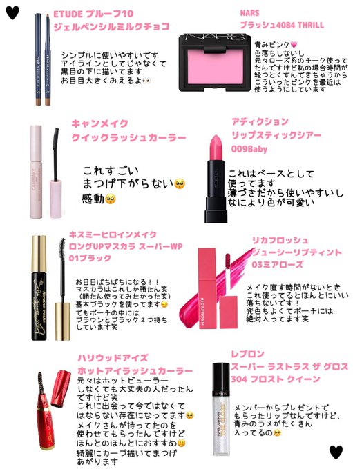 自分で最近使ってるコスメまとめてみたよ🤭♡参考になればいいなぁ😌#マイコスメ#コスメ pic.twitter.com/7BNfnMSBZj