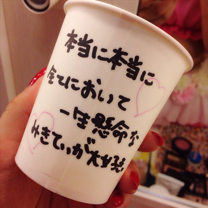 公演中にお水飲んだりするときに使う紙コップにメッセージを書いてプレゼントしたよ😊❤️使ってくれた!うれぴ( ´ ▽ ` )ノ pic.twitter.com/UqLgdX8X5Y