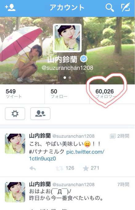 山内鈴蘭@suzuranchan1208 -- 気づいたらフォロワーさんが6万人になってました😆♡Twitterはじめて約2ヶ月!ありがとうございますっっ(◍′◡‵◍)これからも私らしくつぶやいていきますのでよろしくお願いします♡♡ pic.twitter.com/lAjoRMpjSB