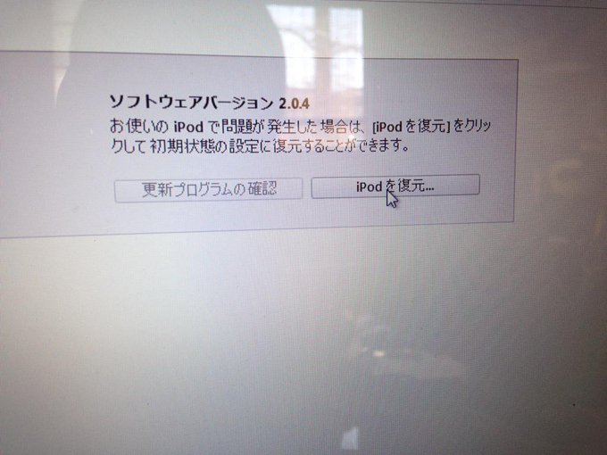 iPodの中のデータが全部消えて半年以上。そんなに音楽聞くタイプじゃないから気長に色々してたけど、そろそろちゃんとなってくれよ!まずパソコンにつないだ時点でiTunesに表示されへんのってなんで😞