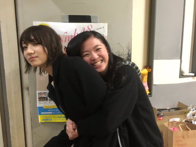お昼公演と夜公演の間ににお風呂に出掛けて、ふぅちゃんの生誕の写真に写りそびれたのはこの2人です。すみません。 pic.twitter.com/CpEmHgKp9h