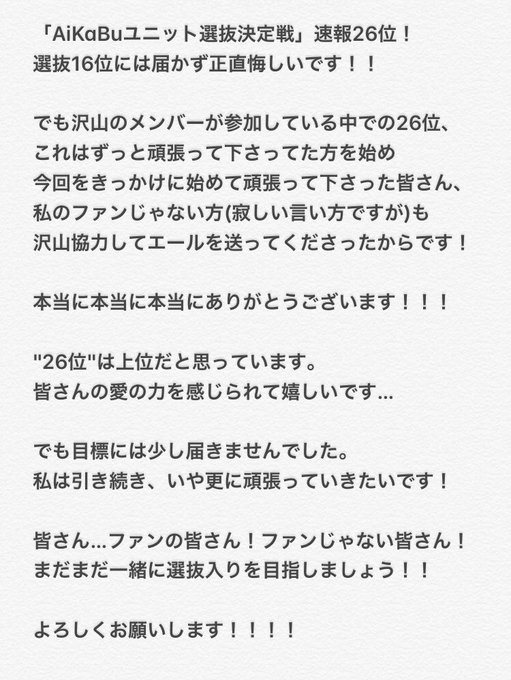 「AiKaBuユニット選抜決定戦」速報26位