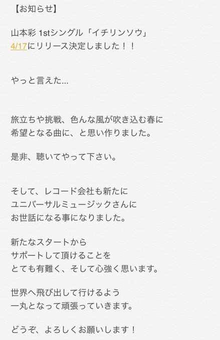 三秋里歩(りぽぽ)@kotanirihodayo -- わーい🙌💗楽しみぃ🥺 twitter.com/sayakaneon/sta… 山本彩 ついに。#山本彩#イチリンソウ#山本彩1stシングル pic.twitter.com/PA96vwOTu2
