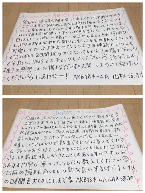 改めて握手会2日間ありがとうございました🍓どの部もたくさんの方が来てくださり本当に自信に繋がります😢☺️#握手会だいすき人間 のツイート見てます👀