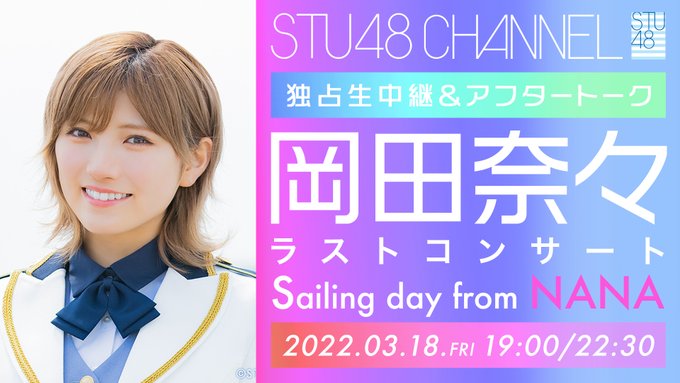 岡田 奈々@okadanana_1107 -- 生放送 ! やったぁぁぁ !会場に来られない皆様も一緒に楽しみましょううう❤️🔥 twitter.com/stu48ch/status… STU48 CHANNEL 【⛴3/18(金)19:00&22:30📺生放送⚓️】#岡田奈々 の #STU48 としてのラストコンサート「Sailing day from NANA」独占生中継が決定!終演後は最速のアフタートーク生放送も決定!この歴史的な日を絶対にお見逃しなく✨ch.nicovideo.jp/stu48/blomaga/…@okadanana_1107 @STU48_official_ @stu_2nd_member_ pic.twitter.com/Rb5L00uSjv