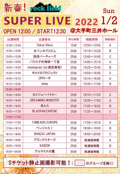 2日「新春!rock field SUPER LIVE」当日券◯