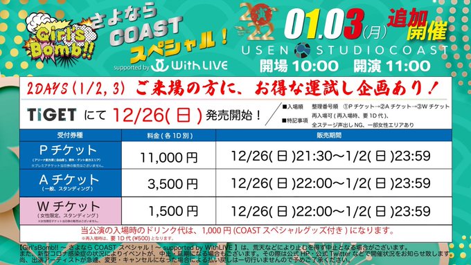 3日『 Girl'sBomb!! ~ さよならCOAST スペシャル! 』当日券◯