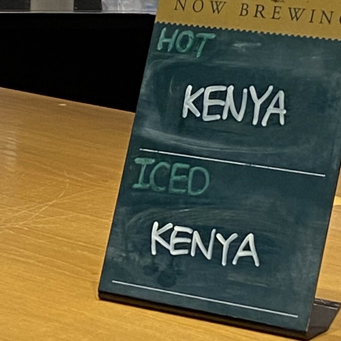 岩永亞美(いわながつぐみ)@tsugu_510 -- 違う店のけんやさん twitter.com/tsugu_510/stat… pic.twitter.com/r9iW4Ayha7 岩永亞美(いわながつぐみ) これいつも”今日はこのスタッフが担当してます!”の看板かと思ってたんだけど、ケニア🇰🇪産のコーヒー豆って意味だった。けんやさんえ?今日も?めっちゃ働くやんえ?この店舗にもけんやさんおるの?!って思ってたら大違いだった。 pic.twitter.com/Zzu2Hxe2sJ