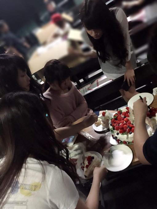 菓匠三全さんからのケーキに群がるメンバーたち( ̄∀ ̄)