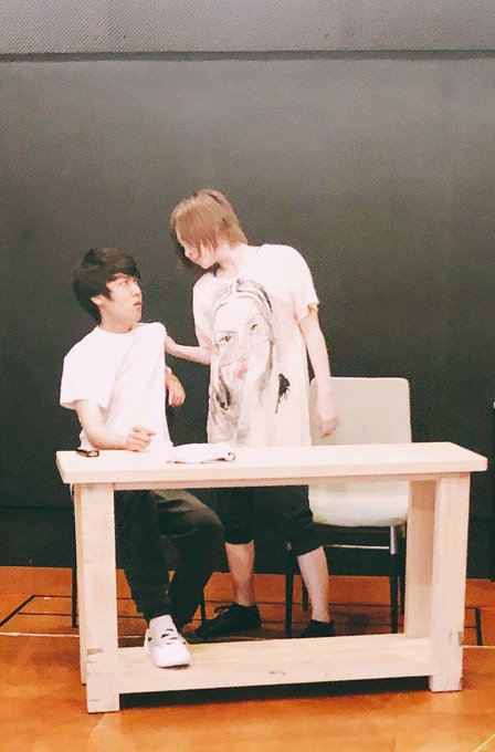 まさに戦場だ。こりゃ命懸けですわ。今日は桧山氏演じるフランツとのシーン稽古でした。アマーリア登場の大事なシーン。アマーリアはフランツをとても嫌っているのですが、岩田と桧山氏は既に仲良しです。今日のオフショット。こんなシーンはありません。笑