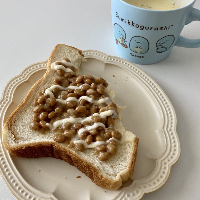 朝の配信で納豆トーストの話したら食べたくなったから久々に作った〜!食べかけなのは…🙊+みんなの投票で決まったスープはクノールさんの大好きな牛乳で作るシリーズです🌽