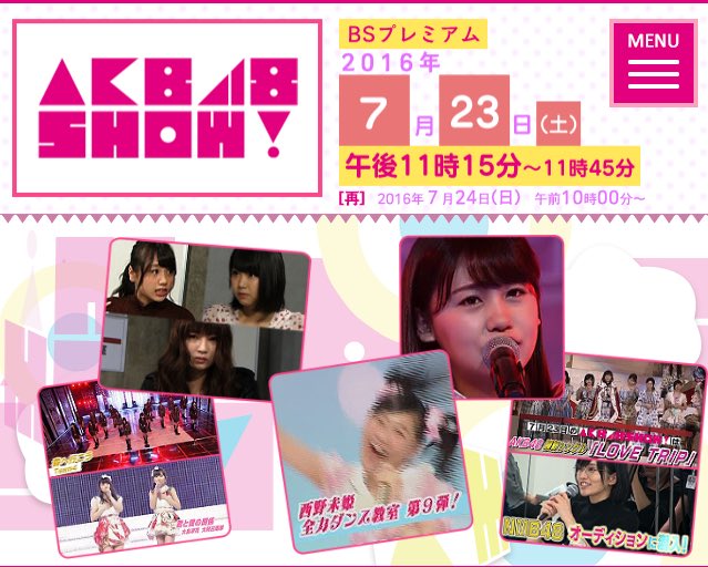 今日の23:15〜のBSプレミアム『AKB48SHOW!』さんに出させて頂いてるので是非見てね!